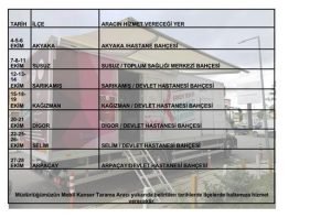 İlçelerde planlanan tarihler dahilinde belirlenecek noktalarda Mobil Tarama aracımız hizmete hazır bir biçimde bulunacaktır.